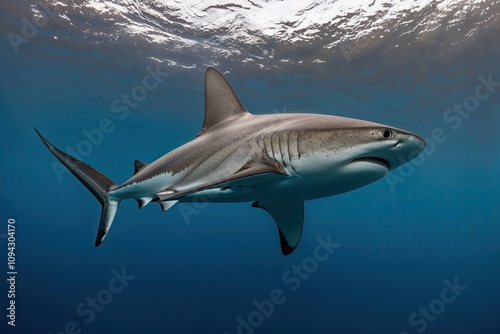 Fototapeta premium Lonely Hammerhead Shark Gliding Through Open Water