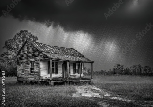 Obraz premium Lonely house in a stormy field