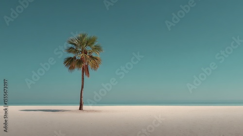 © goodskin, Fototapeta premium Lonely palm on shore view