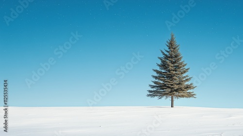 Fototapeta premium Lonely pine tree in snow against clear blue sky