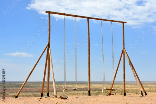 © Alexander, Fototapeta premium Lonely swings in the middle of the desert.