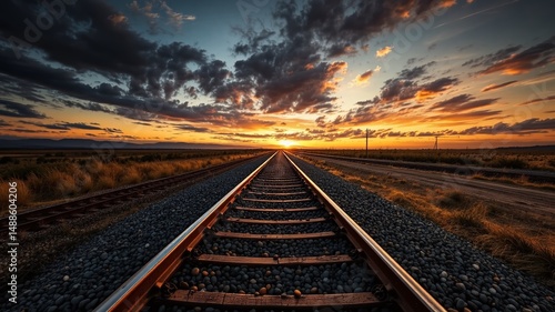 © Phatsawut, Fototapeta premium Lonely Track Under a Golden Sunset