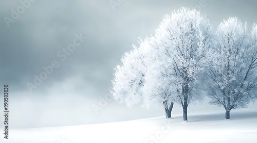 © yusmahendra0408, Fototapeta premium Lonely Tree in Foggy Winter Landscape