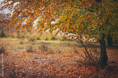 © bonciutoma, Naklejka premium Lonely tree with red leaves