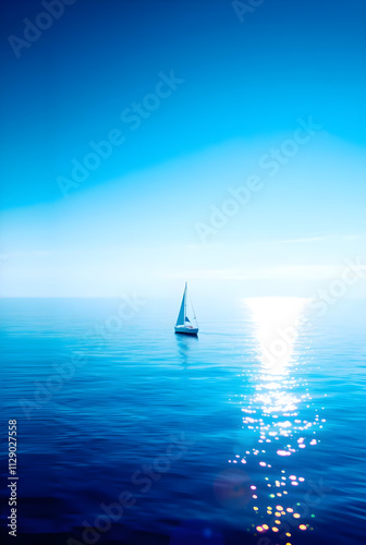 Fototapeta premium Lonely Yacht on Clear Sea