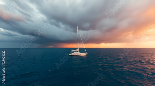 Fototapeta premium Lonely Yacht on Clear Sea