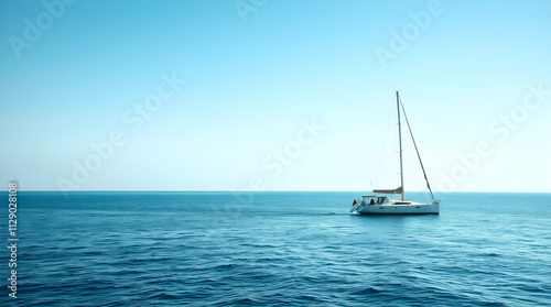 Fototapeta premium Lonely Yacht on Clear Sea
