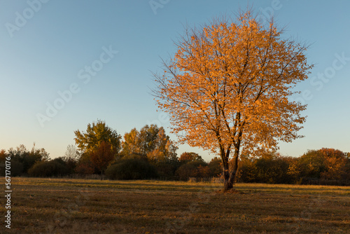 Fototapeta premium Lonely young oak tree in autumn time