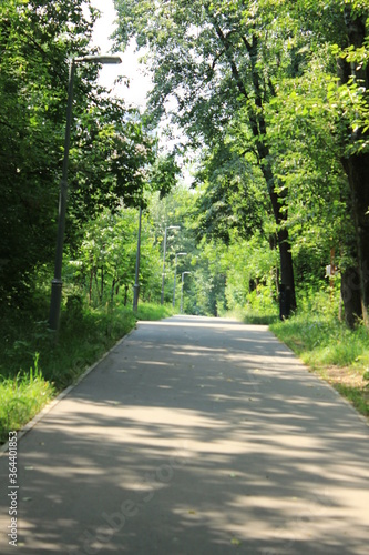 Fototapeta premium Long alley in a city park. Moscow. Russia.