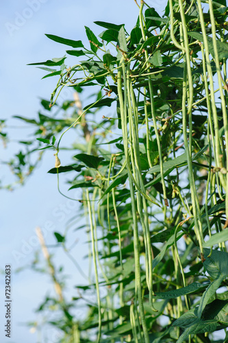 © lzf, Obraz premium Long bean plants in growth at vegetable field