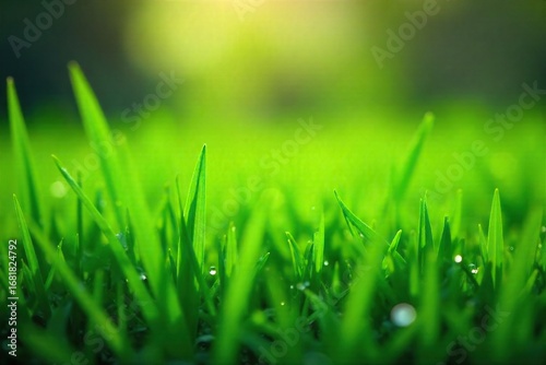 © Sunisa, Fototapeta premium Long blades of vibrant green grass glistening with morning dew after a refreshing rain shower Perfect for weather, nature, and environmental themes , texture, lush, plant