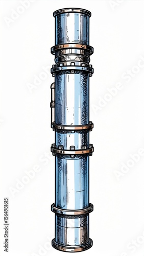 Naklejka premium Long Blue Metal Pipe Industrial Machinery Illustration