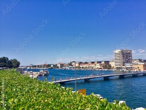 © RLS, Fototapeta premium Long bridge across sea water in zadar croatia on a sunny day