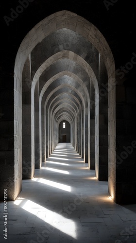 © Vilius, Obraz premium long corridor with alternating light and shadow