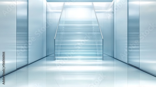 Obraz premium Long corridor with stairs, journey of architectural lines and perspective explore