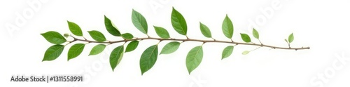 © Jame, Obraz premium Long curved branch with leaves isolated on white background, foliage, twig