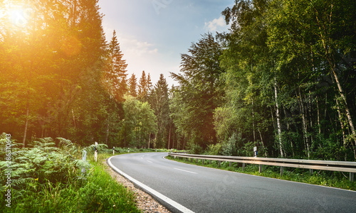 © AA+W, Fototapeta premium Long Curvy Forest Road In Alpine Mountains