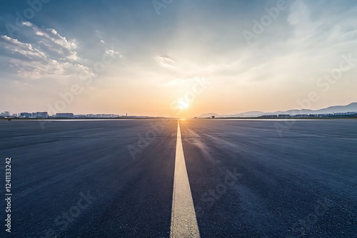 © Emongrapic, Fototapeta premium Long Deserted Road at Sunset – Scenic Evening Sky Background