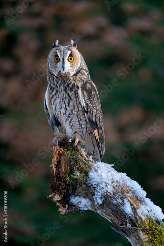 Obraz premium long-eared owl (Asio otus) on tree in forest.