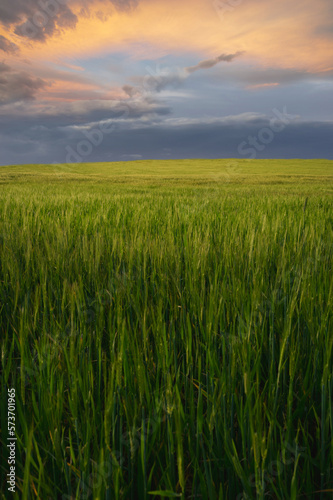 © johngeorgiou, Fototapeta premium Long empty crop field during spring