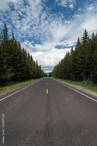 © Nicholas Steven, Fototapeta premium Long empty road into the forested mountain horizon, Cascade Lakes Oregon