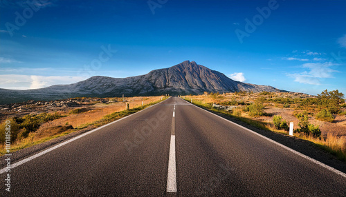 © Fazila, Fototapeta premium long empty road with a mountain in the background