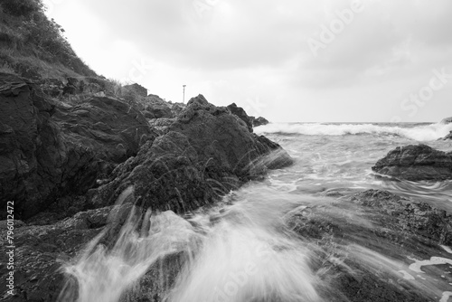 © imphilip, Obraz premium Long exposure black and white photos of coastline scenery.