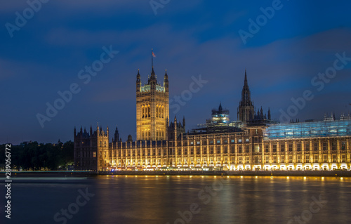 © Yogesh, Fototapeta premium Long exposure blue hour shot of Westminster Palace London