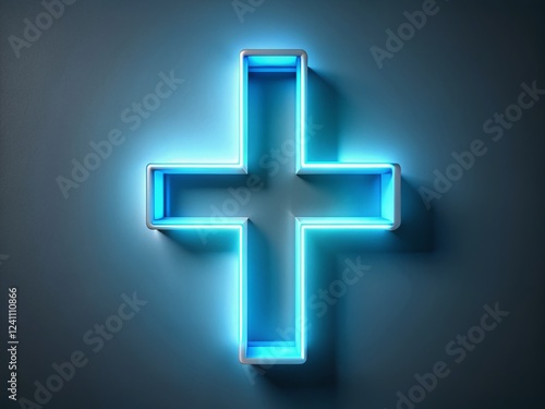 © Man888, Fototapeta premium Long Exposure Blue Veterinary Cross Symbol on Gray Background - Stock Photo