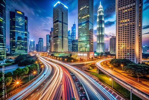 © Arnada, Obraz premium Long Exposure Business Dynamics Showcasing Power and Innovation in a Modern Cityscape