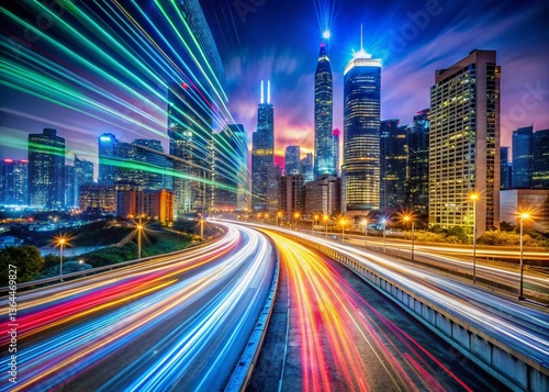© thataroth, Fototapeta premium Long Exposure Light Trails City Night Pandemic Recovery 3G Rules