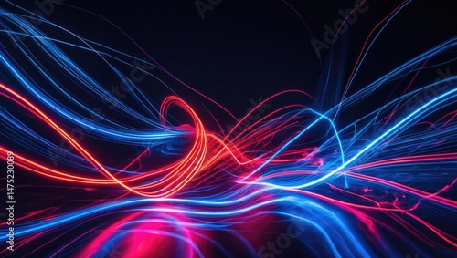 © Giovanni, Naklejka premium Long exposure light trails in a photography composition of ripples and waves against a black canvas.