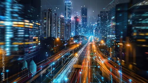 © Khoirul, Naklejka premium Long exposure night light photography in the middle of the city skyscrapers