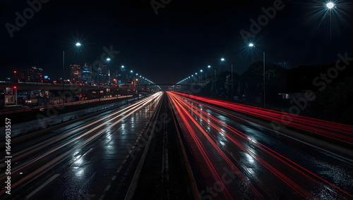 Fototapeta premium Long Exposure Night Traffic on Wet Highway