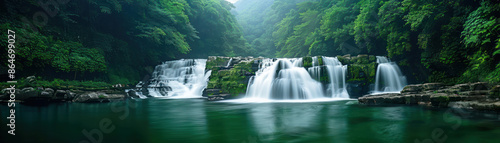 © pisan, Fototapeta premium Long Exposure of a Waterfall Capturing Silky Smooth Water and Natural Tranquility in Stunning Photographs for Relaxation, Meditation, and Home Decor