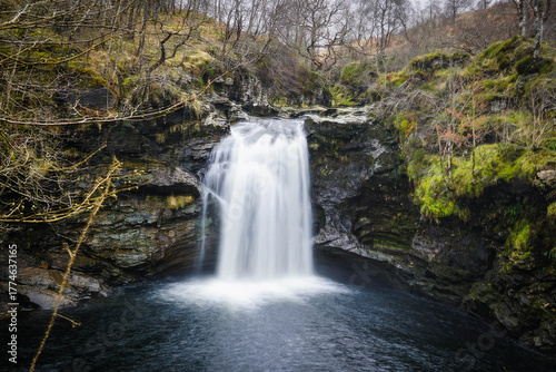 © Saundra, Fototapeta premium Long Exposure of Rob Roy’s Bathtub Waterfall in the Scottish Highlands