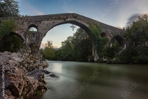 Fototapeta premium long exposure of the medieval stone bridge and the river with silk effect