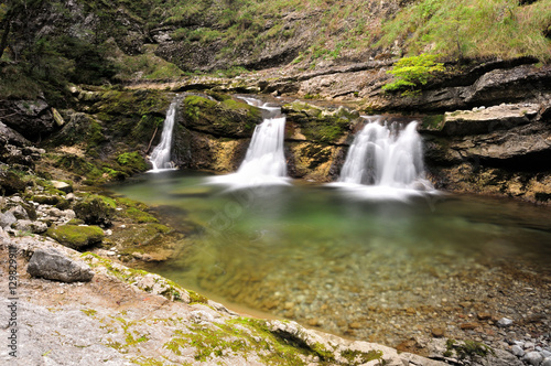 © Chris Peters, Fototapeta premium long exposure of three little waterfalls at a mountain creek in Bavarian Alps