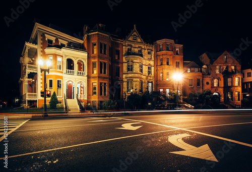 Fototapeta premium Long exposure of traffic and historic houses at Logan Circle at