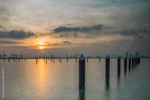 © ChyeSeng, Fototapeta premium Long exposure on birthing posts in the sea