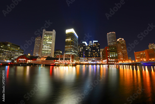Fototapeta premium Long Exposure photo of Boston Harbor at Night
