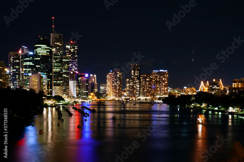 Naklejka premium Long exposure photo of Brisbane skyline at night