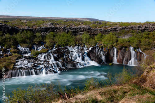Fototapeta premium long exposure shot of wide Hraunfossar waterfall, Iceland