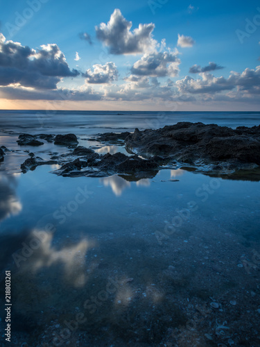 Obraz premium Long exposure sunset on Palmahim rocky Beach- Israel