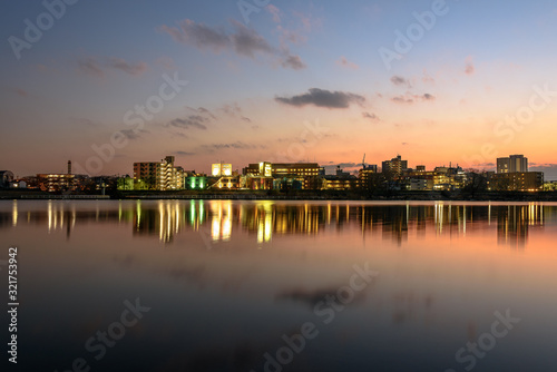 © Godimus Michel, Fototapeta premium long exposure sunset picture of Tamagawa near Noborito