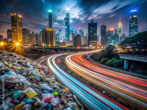 © Four888, Fototapeta premium Long Exposure: Urban Decay & Plastic Pollution - Architectural Reflection