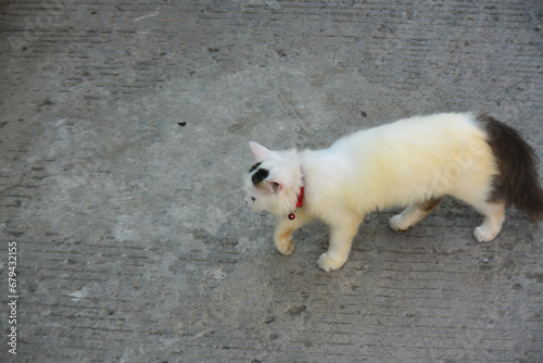 © Raden_Yogana, Fototapeta premium Long fur white cat is walking