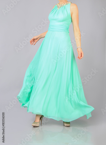 © Yuri Bizgaimer, Fototapeta premium long green dress and clutch the girl in studio