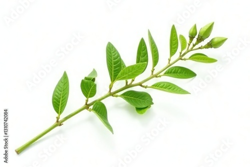 © Sathaporn Buarabut, Fototapeta premium Long green stem with green leaves isolated on white background, long stem, green stem, blooming buds