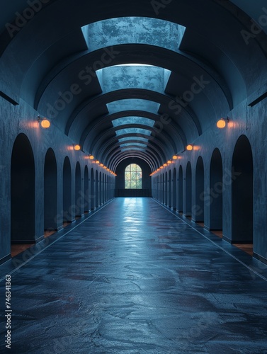 © hakule, Fototapeta premium Long Hallway With Skylight